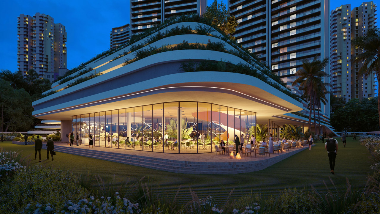 Ans. Amenities include a 1.75 lakh sq. ft. clubhouse, 7 high-speed elevators per